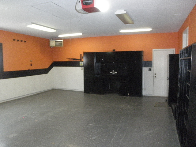 Your garage is 21 feet wide and 26 1/2 feet wide. You will note in the top left corner that it has a heater. Great shelving and a tool cabinet. You will be allowed to perform minor repairs in the garage not out in the NEW driveway. In the right hand corner is a door to the house and to your outside deck. |
